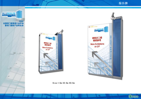 垂于通道上方,可以针对参观观众发布信息广告,内容夺目、形象深刻。 |