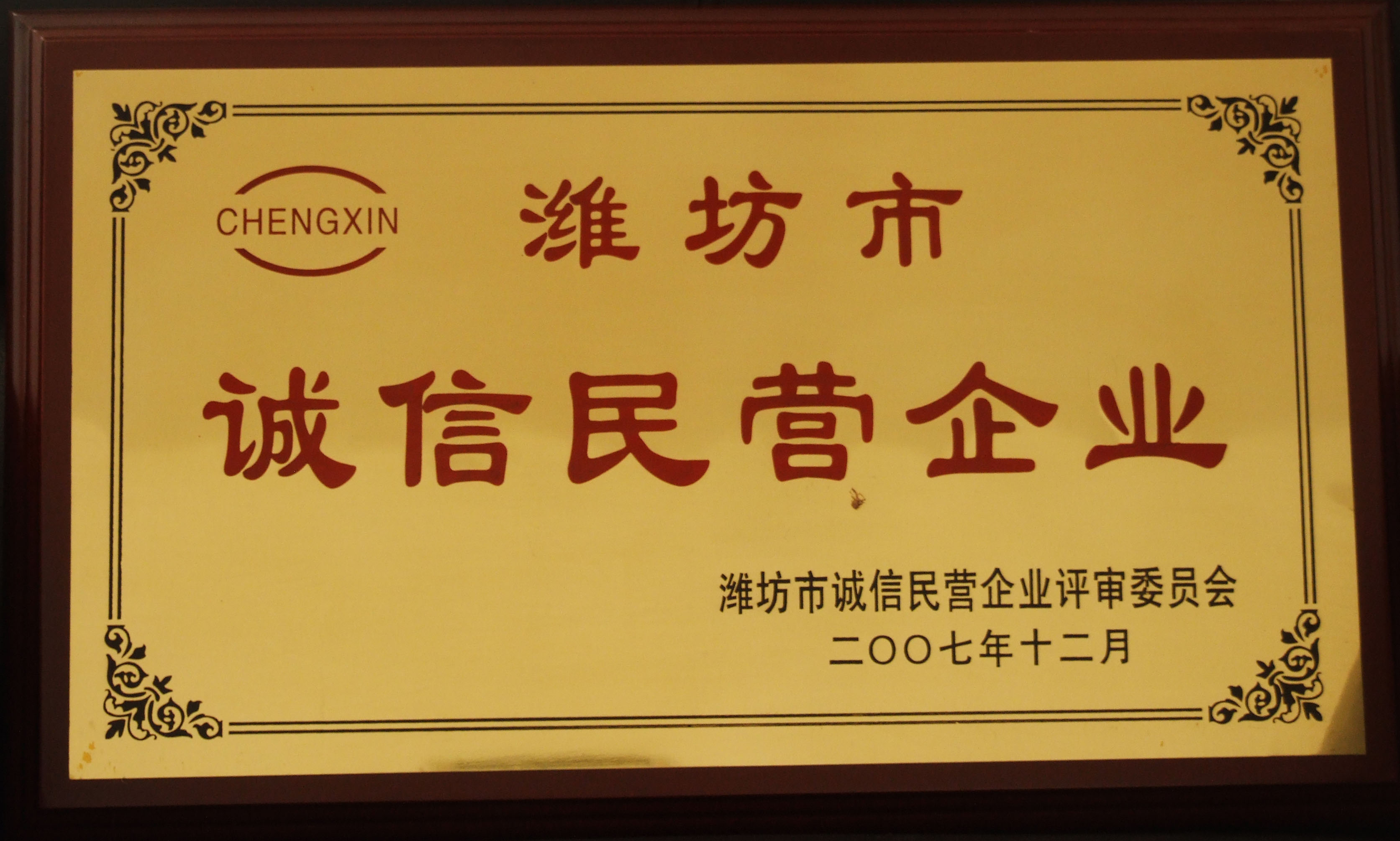 颁发机构: 潍坊市诚信民营企业评审委员会