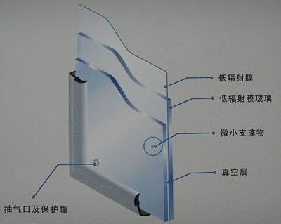 真空玻璃是将两片平板玻璃四周密闭起来,将其间隙抽成真空并密封排气孔,两片玻璃之间的间隙为0.1-0.2mm,真空玻璃的两片一般至少有一片是低辐射玻璃,这样就将通过真空玻璃的传导、对流和辐射方式散失的热降到最低,其工作原理与玻璃保温瓶的保温隔热原理相同。真空玻璃是玻璃工艺与材料科学、真空技术、物理测量技术、工业自动化及建筑科学等,多种学科、多种技术、多种工艺协作配合的硕果。