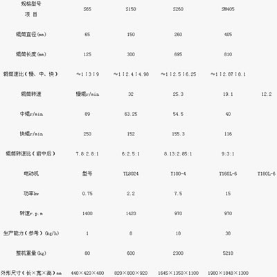 三、标志、包装、运输与保管 1 、每台三辊研磨机应在明显位置固定产品标牌,标牌应符合GB/T13306的规定,标牌应标明如下内容: a)制造厂名称 b)产品名称及型号 c)主轴转速; d)生产率 e)配套动力 f)机重 g)产品制造编号 h)产品出厂日期。 2 、在机壳明显位置用红色箭头标出转子的旋转方向。 3 、三辊研磨机应包装出厂,包装应便于运输,并保证产品不受损坏。 4 、随同产品供应的附件(备件及工具)应齐全。 5 、每台产品应附有下列文件: a)装箱清单 b)产品质量检验合格证 c)产品使用说明书 d)用户意见调查表。 6.全部文件用塑料袋装好密封后,固定在箱内。 7.三辊研磨机应存放在防潮、防雨的设施内。 三辊研磨机 - 参数表
